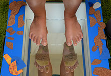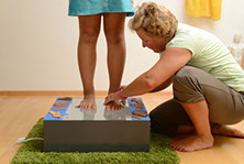 Am Podoskop sieht der Therapeut dann den Fuß auch von unten und kann die Druckpunkte interpretieren. Die Muskulatur wird durch Verwendung von Korkplättchen stimuliert oder entspannt.Der Körper reagiert darauf in Sekundenschnelle, die Veränderung ist auch für den Patienten spürbar. Die Sohle wird von einem Orthopädietechniker hergestellt und sollte täglich in jedem Schuh getragen werden. Es ist nach 8 bis 10 Wochen eine Kontrolle nötig, da sich ja der Fuß und die Statik verändert.